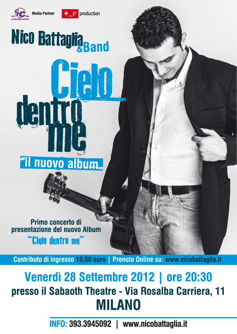 Nico Battaglia presenterà, con la sua band, il nuovo album “Cielo dentro me”.